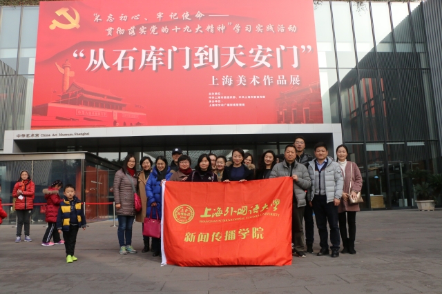 2018年1月17日下午14点,新闻传播学院教工党员乘车前往位于浦东新区的中华艺术宫,共同参观“从石库门到天安门”展览活动。此次实地参观活动,不仅拓展了基层支部党员活动的形式,而且倡导各位党员铭记历史,将践行十九大提出的“不忘初心,牢记使命”精神内化于心。体味文化变迁,各类文化作品背后展现着事境变迁,更蕴含着作者不屈的奋斗精神;传承党史精神,中共党员透过现象把握本质,感受艺术作品背后的深沉积淀,继承中国优秀文化传统,发扬新时代党员精神。