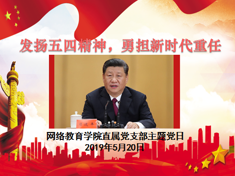 2019年5月20日下午,网络教育学院直属党支部举行了“发扬五四精神,勇担时代重任”主题党日活动。党支部全体党员集体观看学习了《党史故事100讲》之五四运动系列视频。