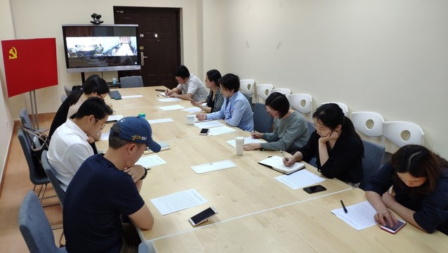 5月29日下午一点半,新闻传播学院教工第一支部、第二支部在虹口一号楼608室和松江一教楼222室开展主题党日活动。会议由党总支书记樊娟主持,采用视频方式两校区同步开展。