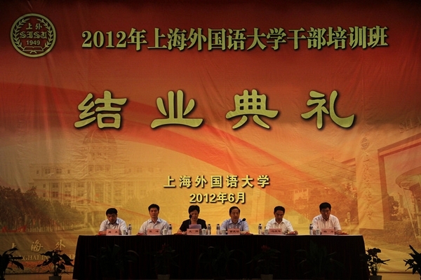 2012年6月15日下午,我校2012年干部培训班结业典礼在虹口校区逸夫会堂隆重举行。校长曹德明、校党委副书记王静、副校长冯庆华、张峰、杨力、周承等领导出席。结业典礼由校党委副书记王静主持。
