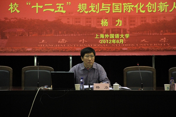 2012年5月25日下午,我校在虹口校区第一报告厅举行干部培训班系列讲座第四讲,副校长杨力教授受邀为全校处级、科级干部作了题为“全面落实‘十二五规划’,大力培养国际化人才”的报告。校人事处处长孙信伟主持了报告会。