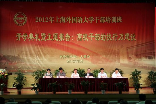 2012年5月24日下午,我校2012年干部培训班开学典礼在虹口校区逸夫会堂隆重举行。校党委书记吴友富、副校长冯庆华、张峰、杨力出席。参加开学典礼的有全校290余名处级、科级干部。开学典礼后,吴友富书记作了题为“高校干部的执行力建设”的主题报告。