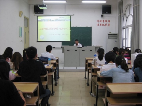 本次活动由校党校讲师团成员、俄语系特邀党建组织员季元龙老师担任主讲,在迎接党的十八大、纪念建团九十周年的大背景下,围绕“学生应如何立足本职岗位,以优异成绩迎接党的十八大”这一主题为我系学生进行指导讲座,我系大一、大二全体同学参与活动。