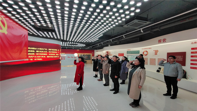 在机关党总支书记王岩老师的带领下,机关一支部全体党员面对鲜红的党旗重温入党誓词。铿锵恢宏的誓词,强烈震撼着在场的每一位党员。党员们参观学习了“溯源”“前行”“探索”“对标”等多个区块,对静安区党建服务中心完整的展示逻辑、深度的情景体验、开放的互动交流赞不绝口。