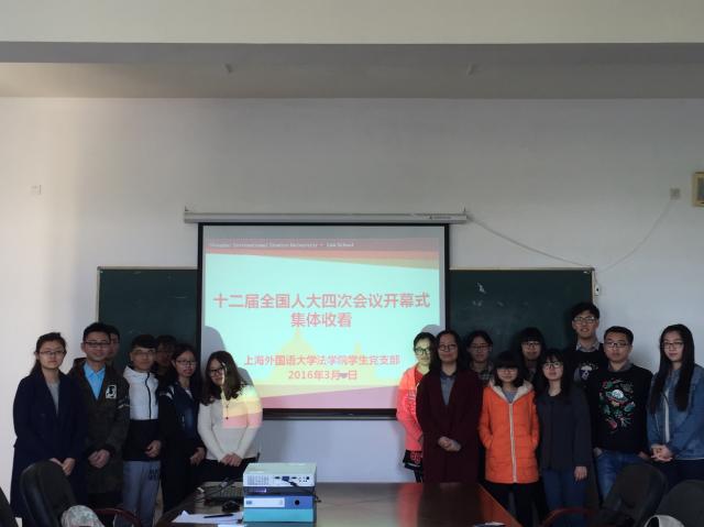3月5日上午,备受关注的十二届全国人民代表大会四次会议在北京隆重开幕。在学院党总支的组织下,上海外国语大学法学院学生党支部的近20名党员同学早早汇聚一堂,集体收看开幕直播,认真聆听并学习了国务院总理李克强所作的政府工作报告。学院党总支副书记麻桑参加了这次集体学习。